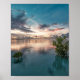 Affiche ciel bleu avec nuages rouges et noirs réfléchis su