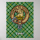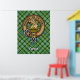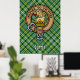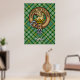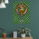 L'insigne de l'emblème du lion Clan Currie est entouré d'une courroie et passe au-dessus de l'arrière - plan tartan. Texte personnalisé.