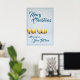 Affiche Cinq boules dorées de Noël - écriture bleue