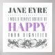 Jane Eyre de Charlotte Bronte cite : "JE SERAIS TOUJOURS PLUTÔT HEUREUSE QUE DIGNIFIÉE." Voir toute la collection à Thornfield Passions ©
