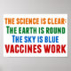 Hillary Clinton cite la vaccination : la science est claire : la terre est ronde, le ciel est bleu, les vaccins fonctionnent. Affiche colorée pour sensibiliser aux épidémies de rougeole et à la pandémie de Covid. Veuillez vacciner vos enfants afin de prévenir la propagation de maladies et de maladies.