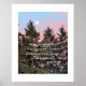 Impression d'affiche à orientation verticale montrant l'image dramatique et photographique d'une pleine lune qui monte au-dessus d'un peuplement d'arbres à feuillage persistant au coucher du soleil, avec un ciel plein de nuages roses, ainsi qu'une citation philosophique de l'historien Socrate. Customisez la taille de votre affiche selon vos besoins.