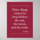 Citations motivationnelles Affiches - Trois choses ne peuvent pas être longtemps cachées : le soleil, la lune et la vérité.
