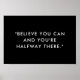 Poster de citation motivationnelle avec "croyez que vous pouvez et vous êtes à mi-chemin" dans la typographie minimaliste moderne en noir et blanc de machine à écrire.