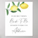 Carte de douche nuptiale à thème citron aquarelle avec illustration aquarelle de citrons sur une branche d'arbre. Écriture calligraphique élégante, parfaite pour les mariages de printemps, d'été ou d'automne. Articles assortis disponibles.