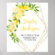 Cette affiche ludique et fantaisiste présente des citrons d'agrumes aquarelles et des feuillages sur un cadre géométrique doré. Le texte combine écriture manuscrite et polices serif pour un look élégant et moderne. Il peut être personnalisé avec les statistiques de naissance de votre bébé, comme le nom, la taille, la date et l'heure de naissance, ou si vous souhaitez le donner comme cadeau de douche vous pouvez modifier et supprimer du texte.