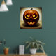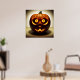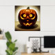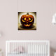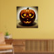 Citrouille sculptée lumineuse avec une expression effrayante, parfaite pour les thèmes, décorations et fêtes d'Halloween.