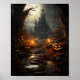 Affiche Citrouille Halloween en Forêt Éffrayant Citrouille