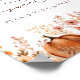 Cet article est un mélange captivant de chaleur automnale et d'élégance bohème qui promet de rendre votre célébration inoubliable. Le centre de cette pièce est une citrouille magnifiquement fabriquée, délicatement peinte dans des tons doux, symbolisant l'abondance et la joie de la saison automnale. Autour de la citrouille, vous trouverez un magnifique ensemble de fleurs et de feuillages à l'aquarelle dans des nuances riches de terre cuite, orange, évoquant les couleurs vives de l'automne. Cet article capture magnifiquement l'esprit d'une baby shower automnale, mêlant le charme rustique à l'élégance bohème pour créer un design à la fois intemporel et enchanteur. Avec sa combinaison étonnante d'art à l'aquarelle et d'éléments boho-chic, cet article promet une célébration aussi unique et spéciale que la mariée elle-même. Cliquez sur le bouton « Personnalisez-le » pour une personnalisation plus poussée de ce modèle. Vous pourrez