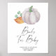 Invitation vos invités avec cette chute d'aquarelle congé, eucalyptus et citrouille blanc baby shower élégante invitation. Utilisez les outils de conception pour modifier le texte, modifier la couleur et le style de police pour créer un modèle unique d'invitation aimable. Éléments correspondants disponibles.