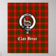 Affiche élégante avec badge écossais Clan Bruce crest et texte personnalisable sur l'arrière - plan tartan.