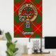 Clan Cameron crête badge entouré d'une sangle et boucle sur l'arrière - plan tartan. Texte personnalisé.