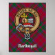 Clan MacDougall badge crête entouré d'une sangle et boucle sur l'arrière - plan tartan. Texte personnalisé.