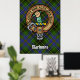 Clan MacInnes crête badge entouré d'une sangle et boucle sur l'arrière - plan tartan. Texte personnalisé.