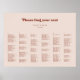 Modèle du tableau de sièges mariage horizontal alphabétique. 150 noms inclus dans l'exemple. Vous pouvez facilement modifier ce modèle et ajouter ou supprimer des noms à l'aide de l'outil de conception. Un thème rétro chic : adoptez ce design typographique vintage et élégant pour votre papeterie mariage, avec un thème de couleur rose pêche. Facile à mélanger avec notre papeterie similaire disponible en orange brûlé, terre cuite et sucre brun. Couleurs et arrière - plans de texte entièrement personnalisables.