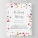 Ce panneau classique de fleurs sauvages colorées en souvenir est parfait pour un mariage rustique ou une fête prénuptiale. Le design présente des fleurs sauvages jaunes, violettes et blanches avec du feuillage sur un fond aquarelle rose et vert.