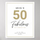 Simple signe de fête d'anniversaire noir, blanc et or "50 et Fabulous" avec une typographie élégante et classe. Customisez-le facilement avec l'âge, le nom, la date et le lieu de la fête.