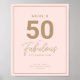 Simple signe de fête d'anniversaire rose & or "50 and Fabulous" avec une typographie élégante et classe. Customisez-le facilement avec l'âge, le nom, la date et le lieu de la fête.