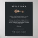 Bienvenue à vos clients dans votre bureau, votre lieu d'affaires ou vos présentations immobilières, et partagez la clé Covid message de sécurité, avec ce panneau moderne et élégant avec une illustration de clé squelette de style vintage en fausse feuille de cuivre. Personnalisez avec votre salutation, votre libellé et votre nom d'entreprise. Montré avec des instructions pour rester à la maison si les clients se sentent malades ou ont été exposés au virus.