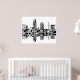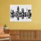 Cette oeuvre d'art à l'encre noire présente l'horizon de Cleveland, dans l'Ohio, avec sa propre réflexion.