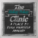 L'adage "la clinique de la clef, un endroit pour se retourner sur un tableau noir écrit à la craie avec des polices amusantes et des ornements.