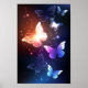 Night glowing butterflies on a dark abstract background. Du beurre noir. Design avec du beurre.