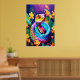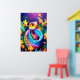 Affiche Cobra serpent avec rose et jaune turquoise éclatan