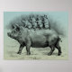 Cochon avec porcelets animaux de ferme vintages bleu crème dégradé