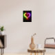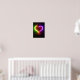Coeur multicolore néon 3d conçu attaché à un mur en brique
