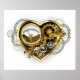 Coeur steampunk mécanique, volumétrique, avec manomètre, acier et or sur arrière - plan blanc. Style Steampunk.
