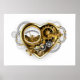 Coeur steampunk mécanique, volumétrique, avec manomètre, acier et or sur arrière - plan blanc. Style Steampunk.