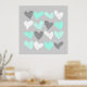 Affiche Coeurs d'amour gris menthe mignonne