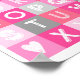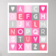 L'alphabet carré géométrique moderne imprimé en pépinière rose pastel clair, rose chaud, fuchsia, corail et gris pour filles.