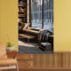 Affiche coin nordique cosy avec mobilier, simple en bois