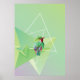 Quelle belle affiche d'art à l'apparence faite dans un design abstrait avec des triangles en blanc et vert et un bel oiseau chanteur.