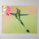 Imprimé vert clair, avec l'étonnant colibri en raquettes et queue de cheval vert métallique de l'Equateur volant vers une fleur avec ses longues plumes de queue gracieusement étirées derrière lui. Ce petit colibri andin spectaculaire a des bottes de plumes de pattes blanches. Belle et unique décoration murale pour colibri, nature et amoureux de les jardins ! Photo prise à Tandayapa, Equateur.