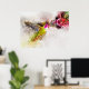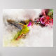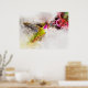 Affiche Colibri volant avec fleur Aquarelle - 04