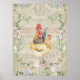 collage vintage - coq et poster de fleurs. Design d'art mural nostalgique parfait pour quiconque aime les choses vintages, rétro et magnifiques vieilles. Prenez ce design pour cette personne spéciale qui aime le look chic et vintage shabby. Faites un grand cadeau - ou gâtez-vous !