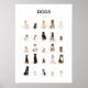 Une collection des races de chiens les plus populaires de 25 illustrées avec des noms sur une carte esthétique. Pour tous les Amoureux de les chiens à afficher et à comparer!