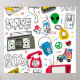 Doodle vintage des années 80 90 avec boite à boum, télévision, cassette et autre objet Une explosion de nostalgie rétro avec boites à boum, cassettes, et plus encore. Branché et dynamique ! Doodles de nostalgie des années 80 et 90 rétro : lecteurs de cassettes, boombox, et plus ! doodle, 90s, 80s, motif, illustration, rétro, vintage, amour, boombox, sport, radio, basket, téléphone, pop, croquis, musique, clipart, disquette, papier, décoration