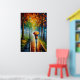 Affiche colorée d'un monde où l'automne laisse danser sous la pluie, peignant les rues avec des couleurs vives. Dans cette affiche, nous voyons un jour pluvieux, où tout se sent un peu seul, mais aussi cosy. Une femme marchant sous la pluie tenant un parapluie dans cette rue solitaire. C'est comme une aventure secrète sous la pluie. Vous pouvez modifier la taille de l'affiche.