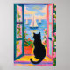 Affiche Colorful Coastal Cat Painting Window Sailboats