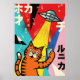 Affiche Colorful Pop Art Cat with UFO Illustration Retro