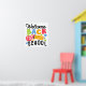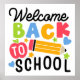 A cheerful and celebratory illustration that says “Welcome Back to School” in bold, multicolored lettering. The word “BACK” bursts with personality—each letter in a different bright hue—while “TO” is cleverly nestled inside a red apple graphic. A playful yellow pencil stretches horizontally across the middle, adding a classic school touch. Whimsical accents like green stars and blue hearts dance around the typography, creating a fun and inviting atmosphere ideal for kicking off the school year with excitement. Perfect for customizable classroom decor, event materials, or student-focused designs.