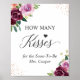 Combien de baisers Panneau de jeu de mariage Fleurs violettes Paillettes dorées rose.