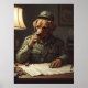 Rencontrez le soldat Chewman, un récupérateur de biscuits qui a traversé son museau. Assis à un bureau encombré en treillis, il ronge nerveusement un crayon entouré de cartes top secrètes, de gâteries pour chiens à moitié mangées et de taches de café. Ses grands yeux disent "J'ai compris", mais sa queue dit "peut-être pas". Cette affiche hilarante capture le chaos adorable d'essayer de son mieux, même si cela signifie manger accidentellement votre propre rapport de stratégie. Pour les sous-chiens partout.