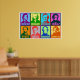 Des couleurs vives ajoutent un esprit pop art moderne à ces portraits graphiques stylisés de compositeurs célèbres. Chaque portrait est conçu avec deux couleurs intenses différentes et a le prénom des artistes placé ci-dessous dans une police audacieuse et propre. Huit compositeurs sont présentés : Chopin, Bach, Wagner, Schubert, Tchaikovsky, Shostakovich, Mozart et Beethoven. Attraper les yeux, contemporain et unique!
