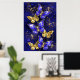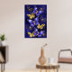 Composition des luxueux papillons saphir et bijoux en or sur arrière - plan bleu texturé.