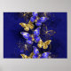 Composition des luxueux papillons saphir et bijoux en or sur arrière - plan bleu texturé.