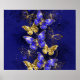 Composition des luxueux papillons saphir et bijoux en or sur arrière - plan bleu texturé.